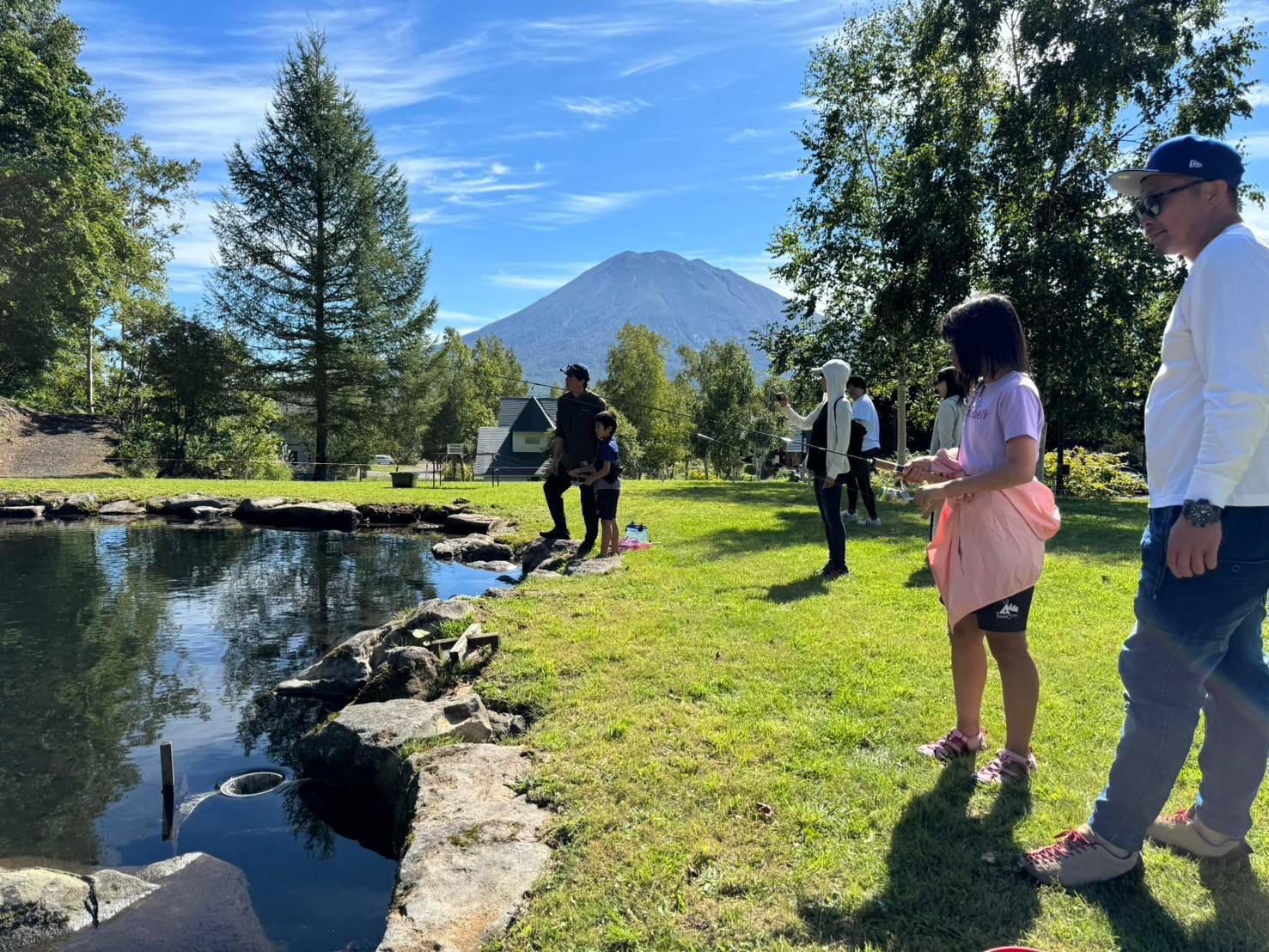 泉居の敷地内にあるひらふグランドセントロ釣り堀で体験できるニジマス釣り堀